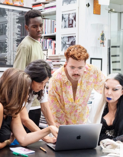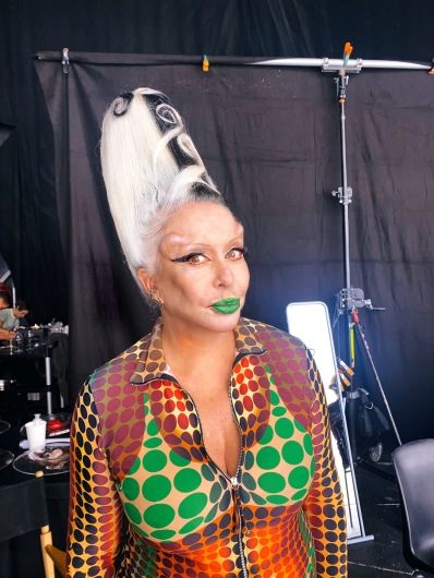 La maison Jean-Paul Gaultier ouvre un casting sauvage, sur internet, pour la figuration de leur campagne prêt-à-porter Cyber. ORLAN, qui a rencontré Monsieur Gaultier au festival Asvoff, lorsqu’elle était Maîtresse de Cérémonie, et le créateur président du jury, se présente comme toute autre personne au casting. ORLAN performe donc sous la direction créative de Florence Tetier dans un shooting photo surréaliste, autour d’une table circulaire, avec de la fausse nourriture fluorescente. Performance, mode et humour se mêlent alors, éléments qu’ORLAN avait déjà exploités dans des séries artistiques telles que “Femme qui rit”. Entourée des meilleures équipes internationales, ORLAN est maquillée par Isamaya Ffrench et coiffée par Jawara. Une campagne iconique qui perpetue le goût de l’artiste pour les porosités entre les disciplines créatives. |