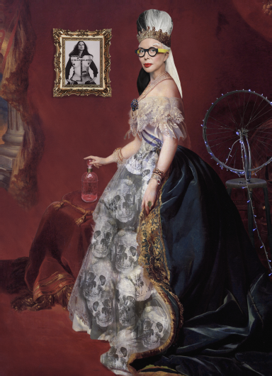ORLAN X GUERLAIN, ORLAN s’hybride à l’impératrice Eugénie et perpétue son sillage, photo montage numérique