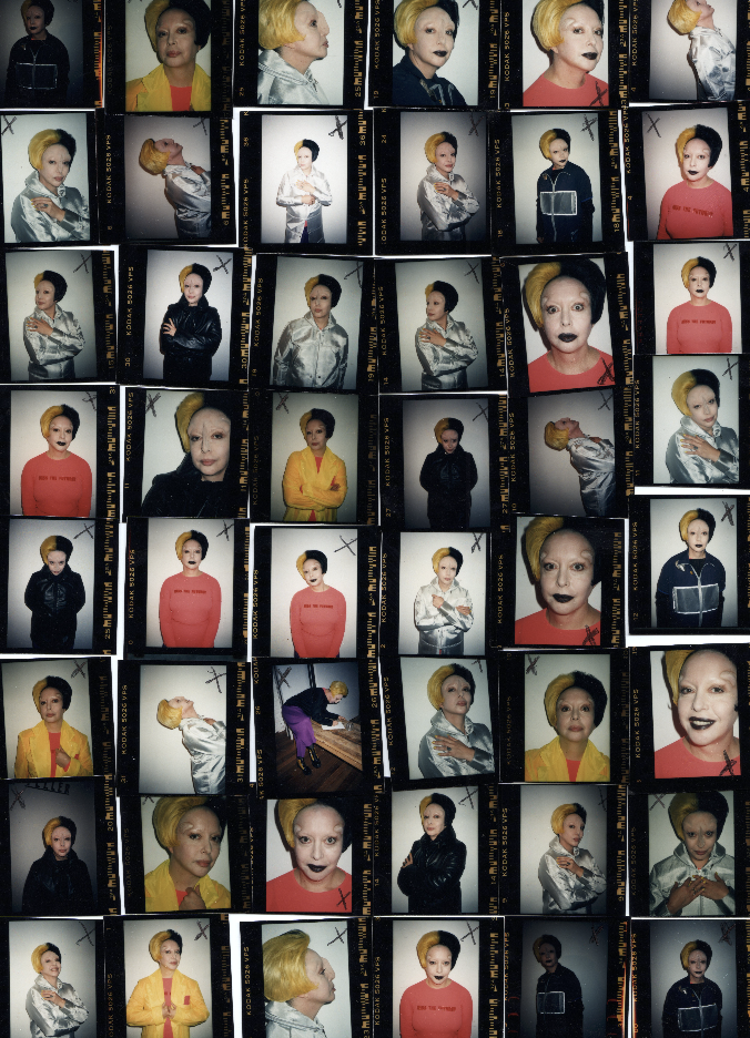 | ORLAN est invitée par Marielle Eudes à faire pour l’AFP. Sous le prisme du photographe Joël Saget, ORLAN présente son nouveau look, toujours bicolore, mais avec une chevelure lisse, dans des poses performatives, où le corps devient sculpture. |