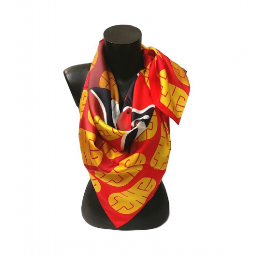 ORLAN et les soieries Brochier ont collaboré dans la création de foulards en soie à partir de sa série de Self-hybridations des masques de l’Opéra de Pékin, 2014. Dans cet opéra, les femmes sont proscrites et les hommes jouent leurs rôles. Comme les œuvres, le foulard sert de QR code. Le client-la cliente peut le scanner et voir apparaître un avatar d’ORLAN qui sort du cadre de l’œuvre et réalise les acrobaties de l’Opéra de Pékin. On peut alors se photographier avec ses ami.e.s et l’avatar et envoyer les photos dans le monde entier comme avec n’importe quel selfie. |